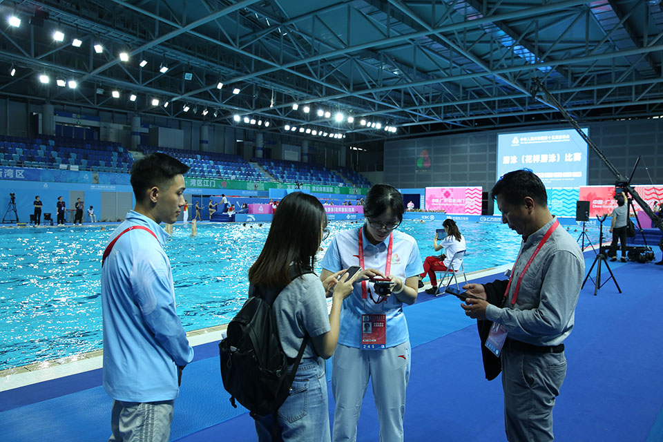 主体育馆、副体育馆、游泳馆以及训练池都由专人管理。团队从早7点到岗,坚守至晚11点,秉持“停赛不停工”原则,在赛事间隙推进彩排、颁奖筹备等工作,以连续作战的坚守保障赛事无缝衔接。