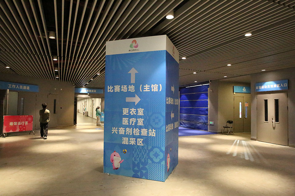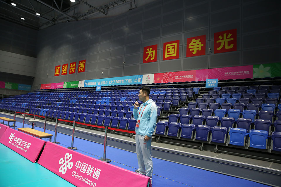 主体育馆、副体育馆、游泳馆以及训练池都由专人管理。团队从早7点到岗,坚守至晚11点,秉持“停赛不停工”原则,在赛事间隙推进彩排、颁奖筹备等工作,以连续作战的坚守保障赛事无缝衔接。
